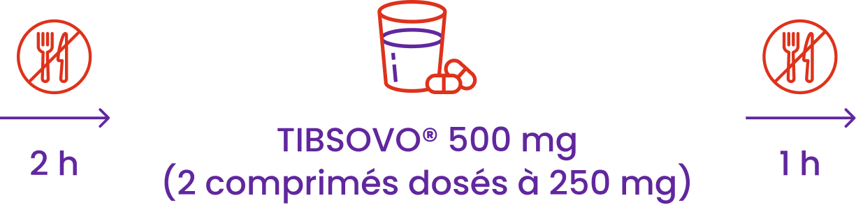 Ne mangez rien dans les 2 heures qui précèdent et dans l’heure qui suit la prise de TIBSOVO®