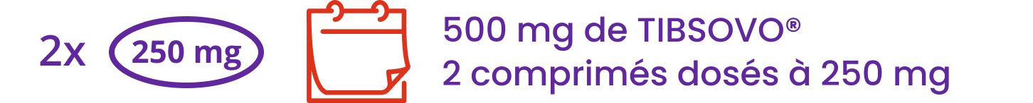 TIBSOVO® 500 mg une fois par jour (environ toutes les 24 heures) par voie orale